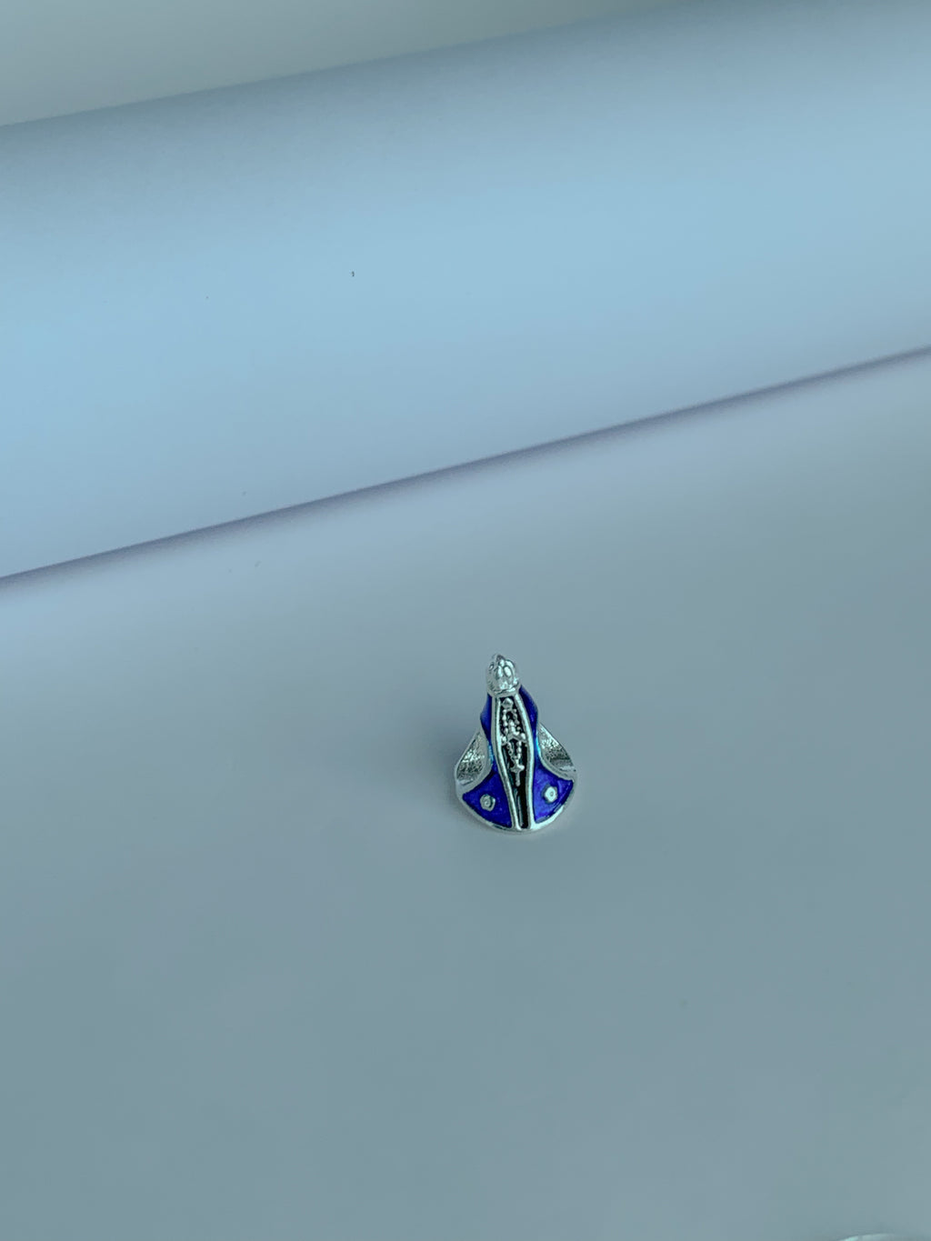 Berloque em prata de lei com representação de Nossa Senhora Aparecida, padroeira do Brasil. Peça delicada com 1,7g, ideal para compor pulseiras e colares, oferecendo um toque de devoção e elegância ao seu estilo. Confeccionado em material nobre, garante durabilidade e brilho duradouro. Perfeito para presentear ou para sua coleção pessoal de joias com significado espiritual.