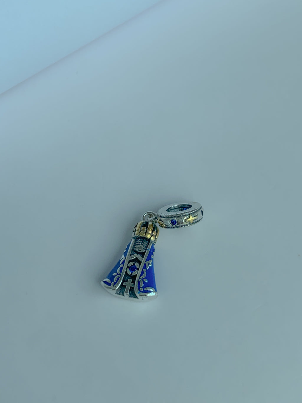 Berloque em prata com representação de Nossa Senhora, peça delicada e versátil para coleções de joias religiosas. Com 2,6g de peso, oferece proporção equilibrada entre presença visual e conforto ao usar. Ideal para pulseiras, colares ou correntes, este berloque combina tradição espiritual com acabamento refinado em metal precioso. Perfeito para quem busca adicionar significado devocional aos seus acessórios.