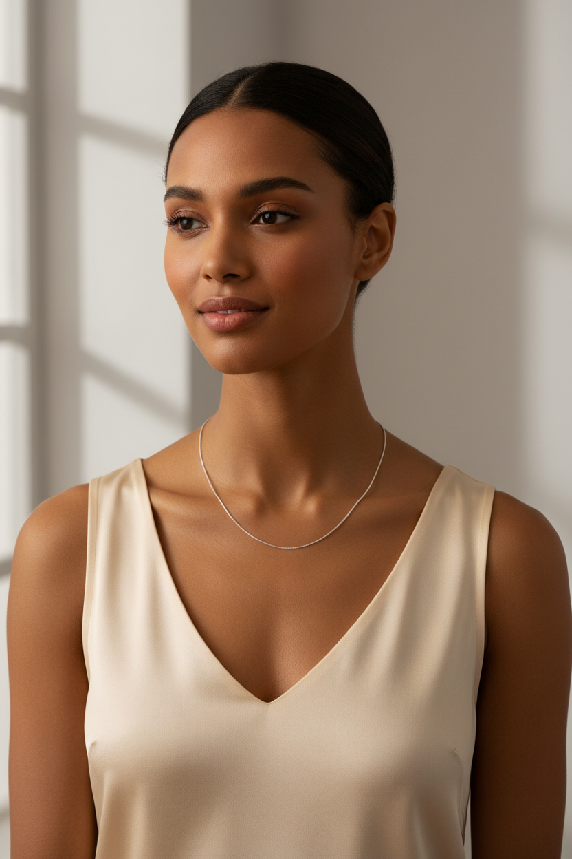 Colar Veneziana V12 em prata 925, peça de joalheria que combina elegância clássica com versatilidade moderna. O design veneziano oferece textura refinada e movimento natural ao corpo, enquanto a prata 925 garante durabilidade e brilho duradouro. Ideal para complementar tanto looks cotidianos quanto ocasiões especiais, este colar apresenta qualidade de material nobre com acabamento profissional. Uma escolha sofisticada para quem valoriza autenticidade e estilo atemporal.