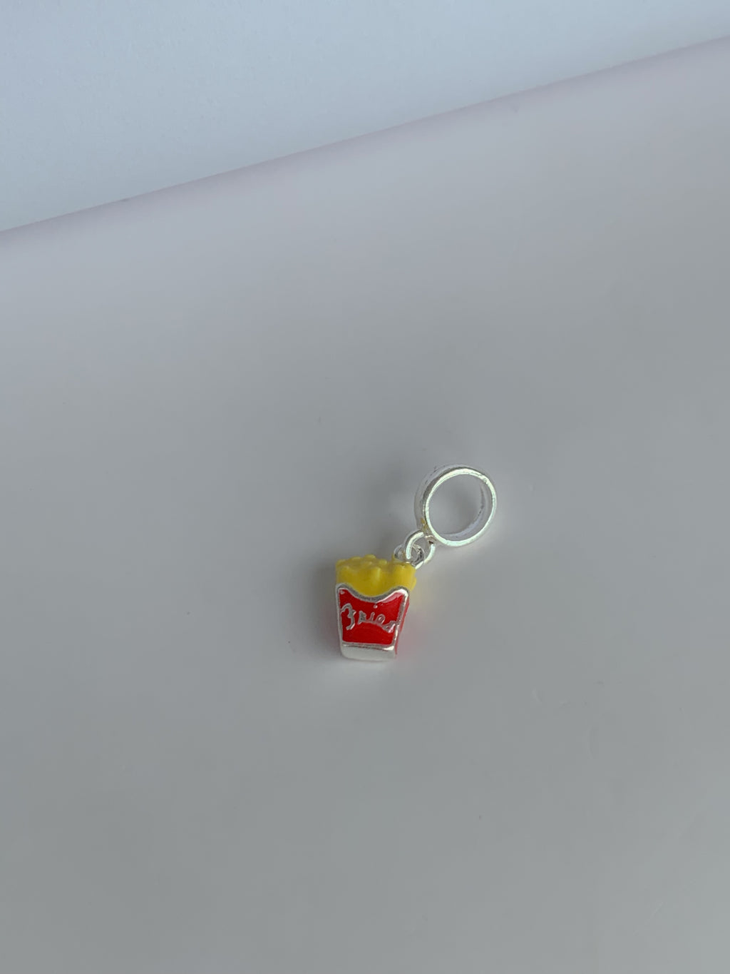 Berloque em prata com design temático em formato de batata-frita, desenvolvido para profissionais da joalheria e colecionadores. Peça de 1,2g que combina leveza com solidez estrutural, permitindo integração harmoniosa em diversos projetos de customização. Acabamento polido e detalhes precisos garantem versatilidade estética. Ideal para criar composições originais em pulseiras, colares e pingentes, agregando personalidade e criatividade às criações.